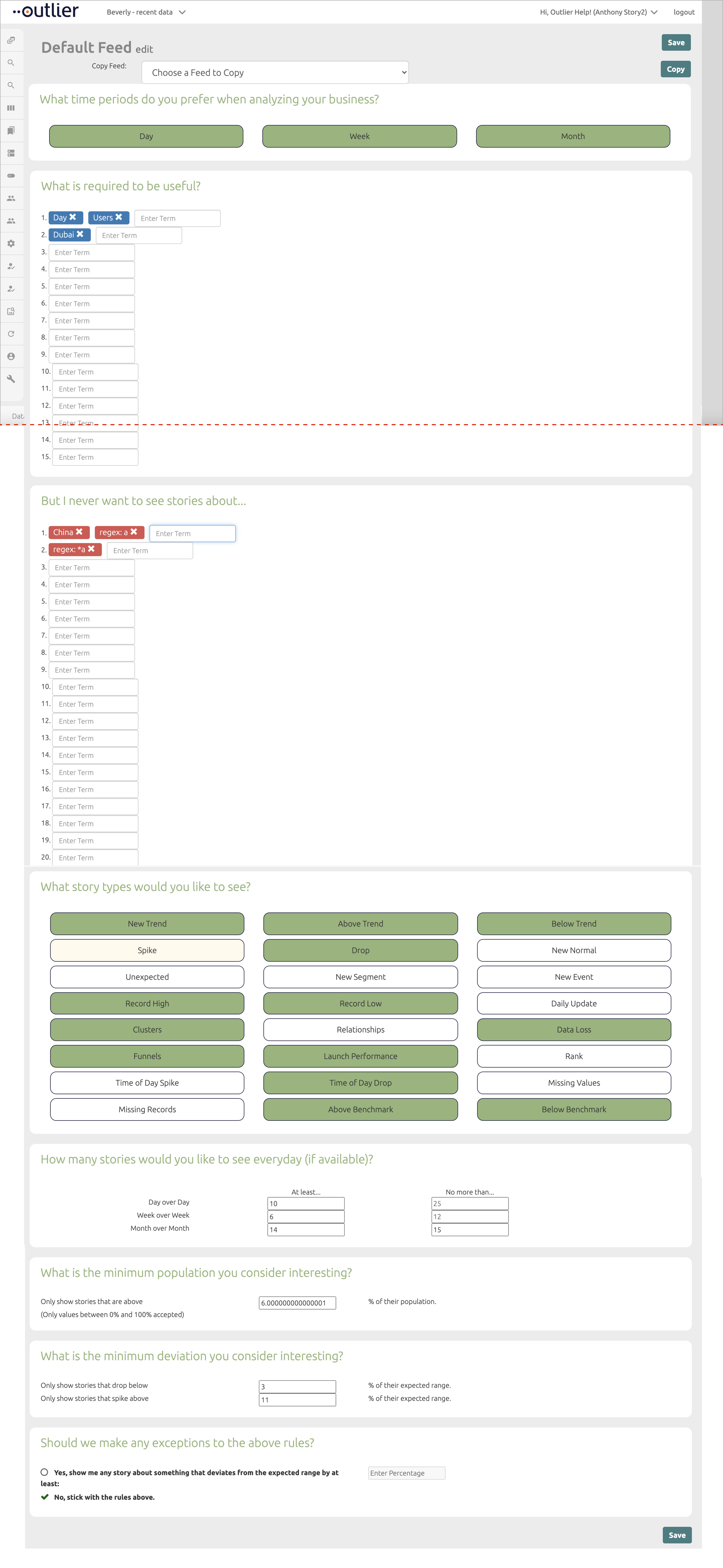 Copy is not consistent and difficult to scan quickly so the CS team spent a significant amount of time on this tool and often made mistakes. Mistakes in feed configuration take some time to undo, because each time Personalizer is saved, it takes 24 hours for the customer feed to reset.